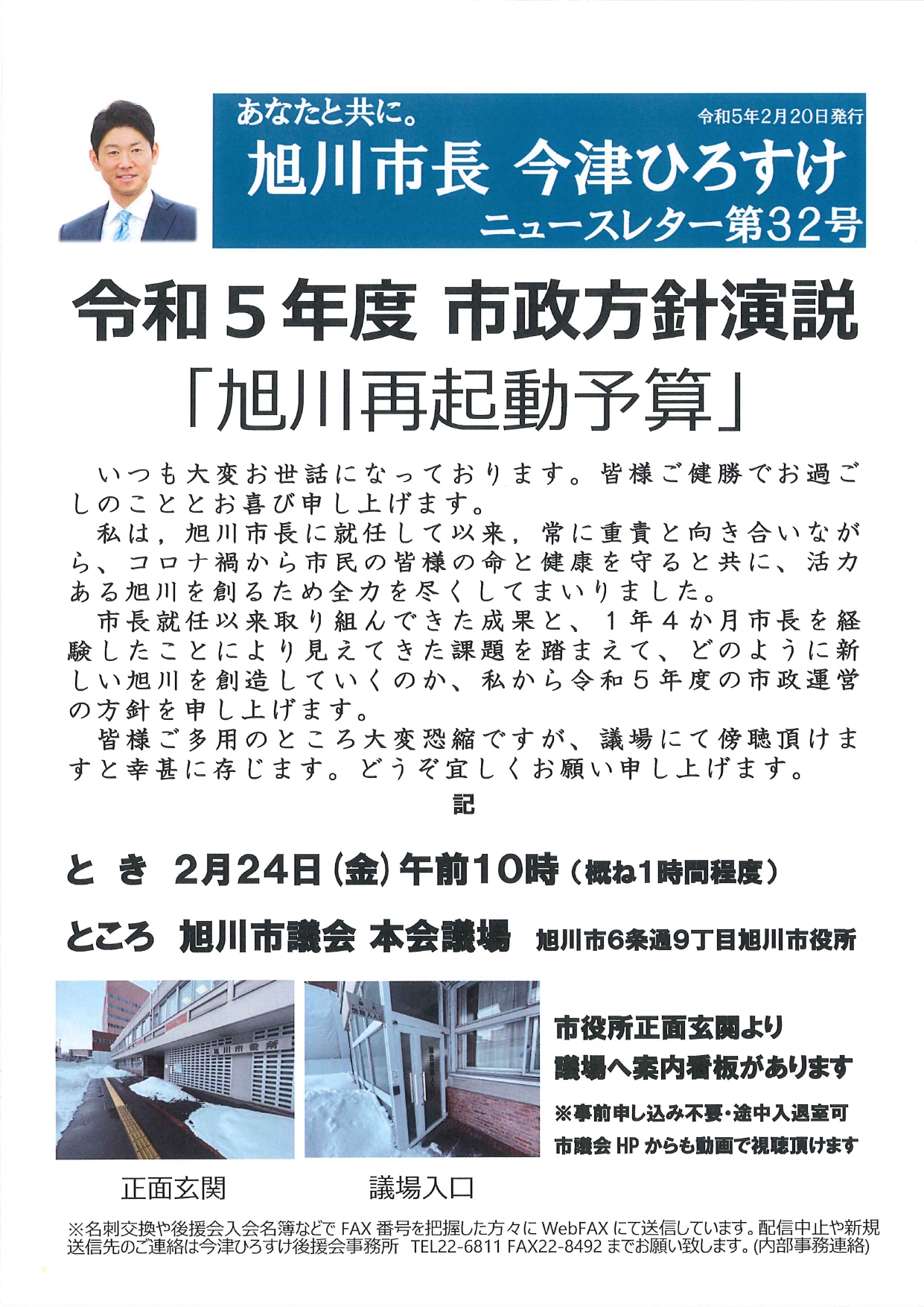 - R4年2月24日発行 Vol27 就任後初めての市政方針演説
